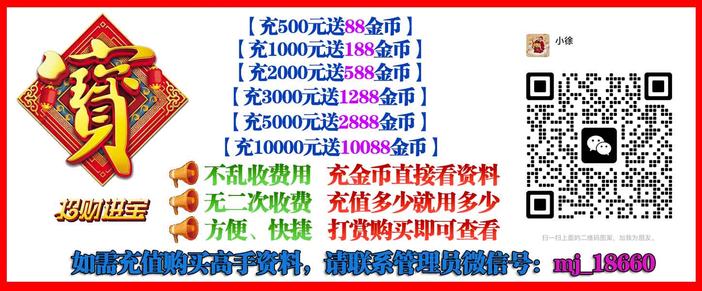 本站汇聚全网高手资料,全部真材实料,中错不改!祝各位老板期期中大奖发大财! 新人注册联系客服微信mj_18660即送188金币! |